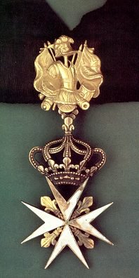 Орденский знак Великих Приорств Богемского и Австрийского католического Державного Ордена св. Иоанна Иерусалимского (Мальтийского Ордена), представлявший собой покрытый белой эмалью и увенчанный золотой мальтийской короной восьмиугольный крест с золотыми двуглавыми орлами императоров австрийских из династии Габсбургов между лучами креста; |