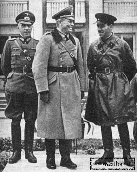 После совместного советско-германского военного "парада Победы" 22 сентября 1939 года в Бресте (захваченном немцами, сломившими упорное сопротивление польского гарнизона Брестской крепости, и любезно уступившими город и крепость своим советским "заклятым друзьям»), который принимали германский генерал Гудериан и советский генерал Кривошеин (см. фото в заголовке настоящей миниатюры), Польша, как это и предусматривалось "пактом Молотова-Риббентропа", в очередной раз в своей многострадальной истории, стала объектом раздела (на этот раз – между Третьим рейхом и СССР).