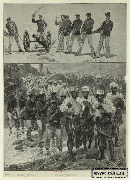 Когда в XVIII в. центральная часть о-ва образовала говаское государство. то Франции пришлось вступить в борьбу с его правителями, нашедшими сильную поддержку в Англии. Вследствие слабости французских сил, борьба эта велась до 1894 г. с переменным счастием; когда же в июле 1894 г. открыт был заговор к поголовному избиению всех французов, то республика решила действовать более энергично в принудить говасов уважать её право и авторитет.