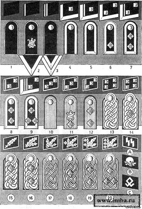Петлицы, погоны и нарукавные углы (шевроны) чинов Альгемейне СС и Ваффен СС