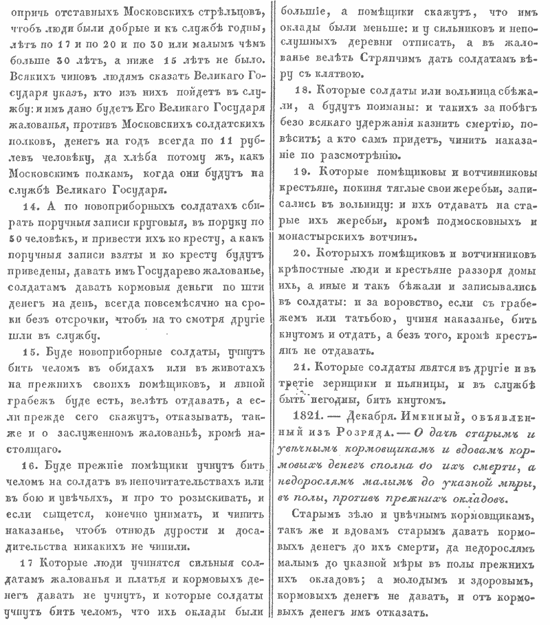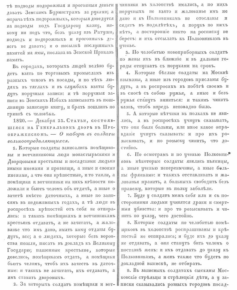 Указ от Декабря 23 1700 г. Статья стостоявшееся на Генеральном дворе В Преображенском - "О наборе в солдаты вольноопределяющихся". ПСЗ, т. IV, № 1820. |