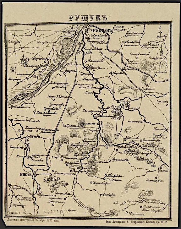В общем, к началу 1877 г. Рущук представлял сильнейшую крепость-лагерь, соответствующую всем новейшим требованиям инженерной техники; на вооружении стояло 270 ор. 15 8-см; числительность гарнизона – 20 т. чел.; крепость была снабжена предметами довольствия в таком изобилии, что могла выдержать блокаду, по крайней мере, 4 мес., требуя для последней (minimum) вдвое сильнейшего числа войск. Но придав Рущуку огромную активную силу на правом берегу Дуная, турки ничего не сделали в этом отношении на левом берегу, что, однако легко достигалось возведением предмостного укрепления на месте существовавшего в 1853 – 54 г. (между Журжею и Слободзеей) и чего так опасалась наша Главная квартира.