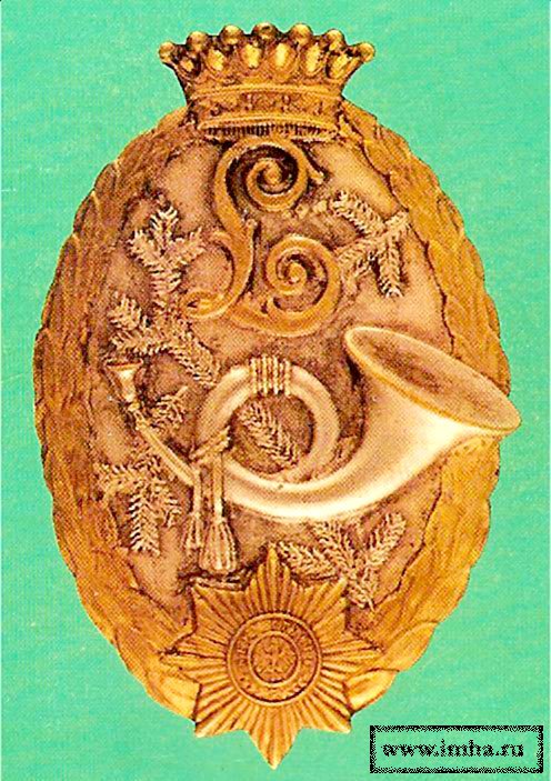 "Корпусным знаком является охотничий рожок на обеих петлицах".