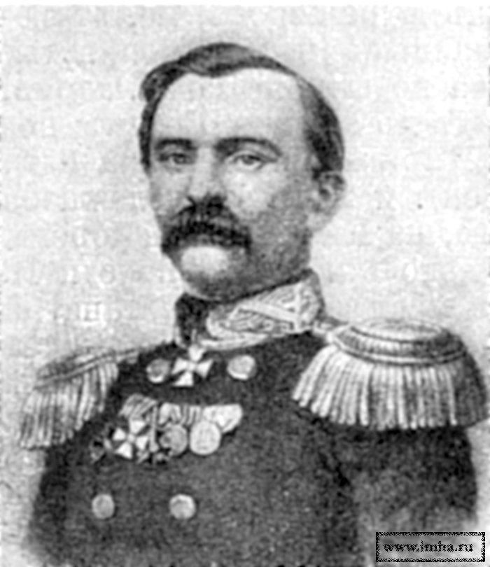 С начала обороны этой крепости поступил на Малахов курган под начальство адмирала Истомина и исполнял должность начальника артиллерии 4-го отделения, выдержав три бомбардирования с удивительным хладнокровием. После смерти Нахимова назначен на место адмирала Панфилова (см. это) начальником 3-го отделения 24 августа, при 6-м бомбардировании Севастополя, лично им управляемая артиллерия 3-го бастиона отличалась особенно удачным огнем по неприятельским батареям.