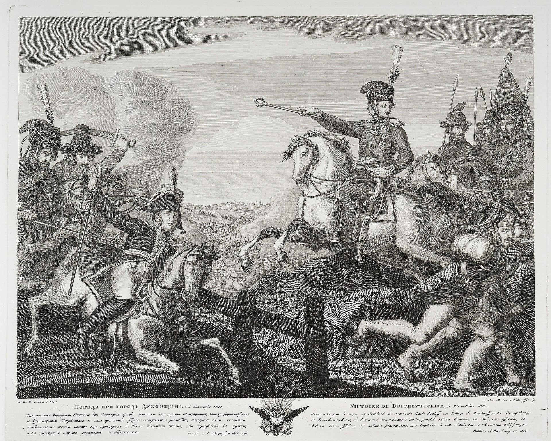 | Победа при городе Духовщина 26 октября (8 ноября) 1812 года. 1814 г. Гравер: Фёдоров, Сергей; Инвентор: Скотти, Доменико. 1780/1781-1825 |
