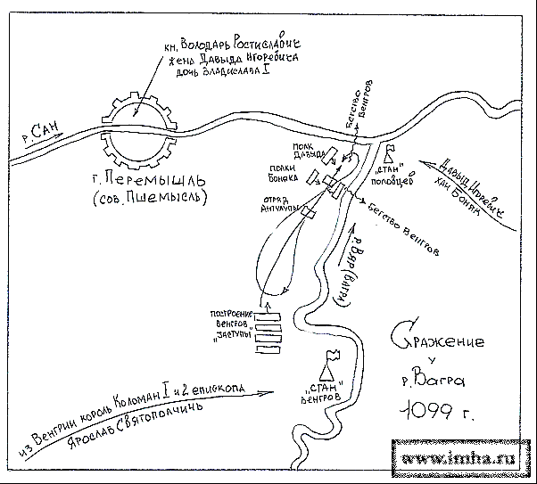 Пример сражения под 1099 г. у реки Вагра не интересовал исследователей. Вероятно, потому что с обеих сторон выступали наемники – половцы и венгры. В качестве исключения на это сражение сослался А. А. Строков как пример половецкой тактики "засад».[6] Однако он не стал развивать тему т. к. считал, что русские в отличие от кочевников не использовали в своем арсенале "засады». Тем самым, опровергая тезис Н. С. Голицына и А. К. Байова о том, что русские часто сражались, используя "хитрости» и "засады», но не приводили ссылок на источники. Что и позволило А. А. Строкову опровергнуть предшественников.
