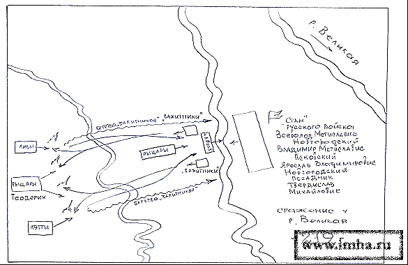 Ход сражения у реки Великая (Матерь Вод) 1219 г. |