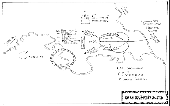 Ход сражения у г. Суздаля 7 июля 1445 г. |