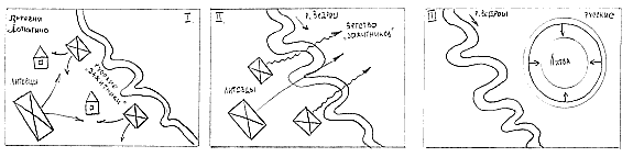 Общепринятый план сражения Ледового побоища в 1242 г. Реконструкция боевых действий, выполненная Д. Н. Альшицем в 1960 г. |