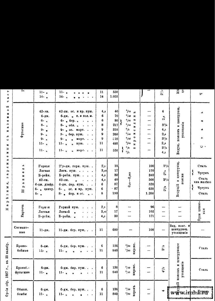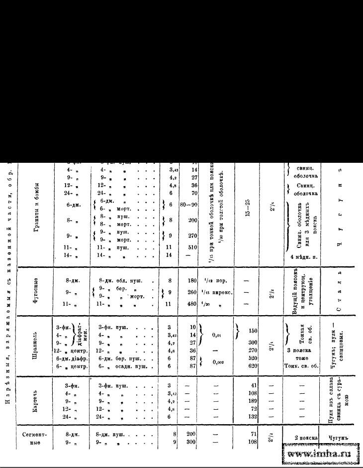 г) картечные гранаты, т. е. если обыкновенная граната наполнена пулями, а промежутки между ними – порохом; Снаряды эти употреблялись по экономическим соображениям и не изготовлялись.
