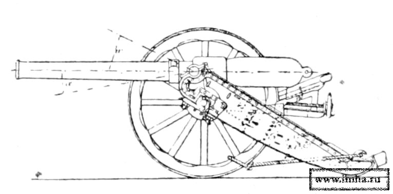 Гаубицы были выведены, а эти пушки были положены на прежние гаубичные лафеты, лишь несколько облегченные укорочением станин и уменьшением числа оковок.