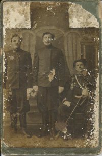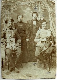 Время, запечатленное на фото предположительно - 1917 год, так как дед держит на коленях свою дочь и мою мать 1916 года рождения, а на этом фото ей не больше года.