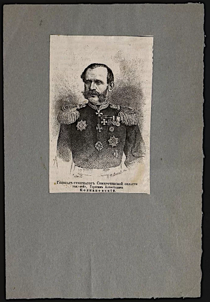 Герасим Алексеевич Колпаковский родился в 1819 году в семье потомственных дворян Харьковской губернии. 6 января 1835 года Герасим Колпаковский поступил па военную службу рядовым на правах вольноопределяющегося в Модлинский пехотный полк. Будучи уже унтер-офицером, в 1840 году Колпаковский принял участие в десантной операции против кавказских горцев. Десантным отрядом, вышедшим с Крыма на кораблях Черноморского флота, командовал генерал Раевский. После успешного завершения операции отряд вернулся в Севастополь, где в 1841 году за отличия по службе Колпаковский был произведен в прапорщики и назначен полковым адъютантом, а 1 января 1844 года - полковым квартирмейстером. В этом же году Модлинский пехотный полк был в очередной раз направлен на Кавказ для участия в боевых действиях против горцев. В крепости Грозной к тому времени под командованием генерал-майора Гурко формировался так называемый Чеченский отряд, в который и был включен Модлинский полк. Со своим личным составом Колпаковский принял участие в строительстве укрепления Воздвиженского, в отражении нападения горцев на реке Аргунь. В октябре 1844 года он был произведен в подпоручики, награжден орденом Святой Анны IV степени. После возвращения полка в место постоянной дислокации Колпаковский был произведен в поручики и назначен полковым казначеем. Во время боевых действий в Венгрии (1849 год) поручик Колпаковский находился в отряде генерала Лидерса и отличился в сражении под Германштадтом. После этих боев он был произведен в штабс-капитаны, награжден орденом Святого Владимира IV степени с мечами и бантом. В 1851 году Герасим Алексеевич получил повое назначение - адъютантом 1-й бригады 15-й пехотной дивизии, а в январе 1852 года - адъютантом Командующего Отдельным Сибирским корпусом..В том же году он был произведен в капитаны. 23 января 1855 года Колпаковскі.и отличия по службе был произведен в майоры с назначением на должность Березовского военно-окружного начальника. В 1860 году, уже подполковником, Колпаковский под командованием полковника Циммермана принял участие в походе за реку Чу. Личный состав под командованием Колпаковского штурмовал укрепления Токмака и Пишпека. За эти бои Колпаковский был произведен в полковники и награжден орденом Святого Георгия IV степени.