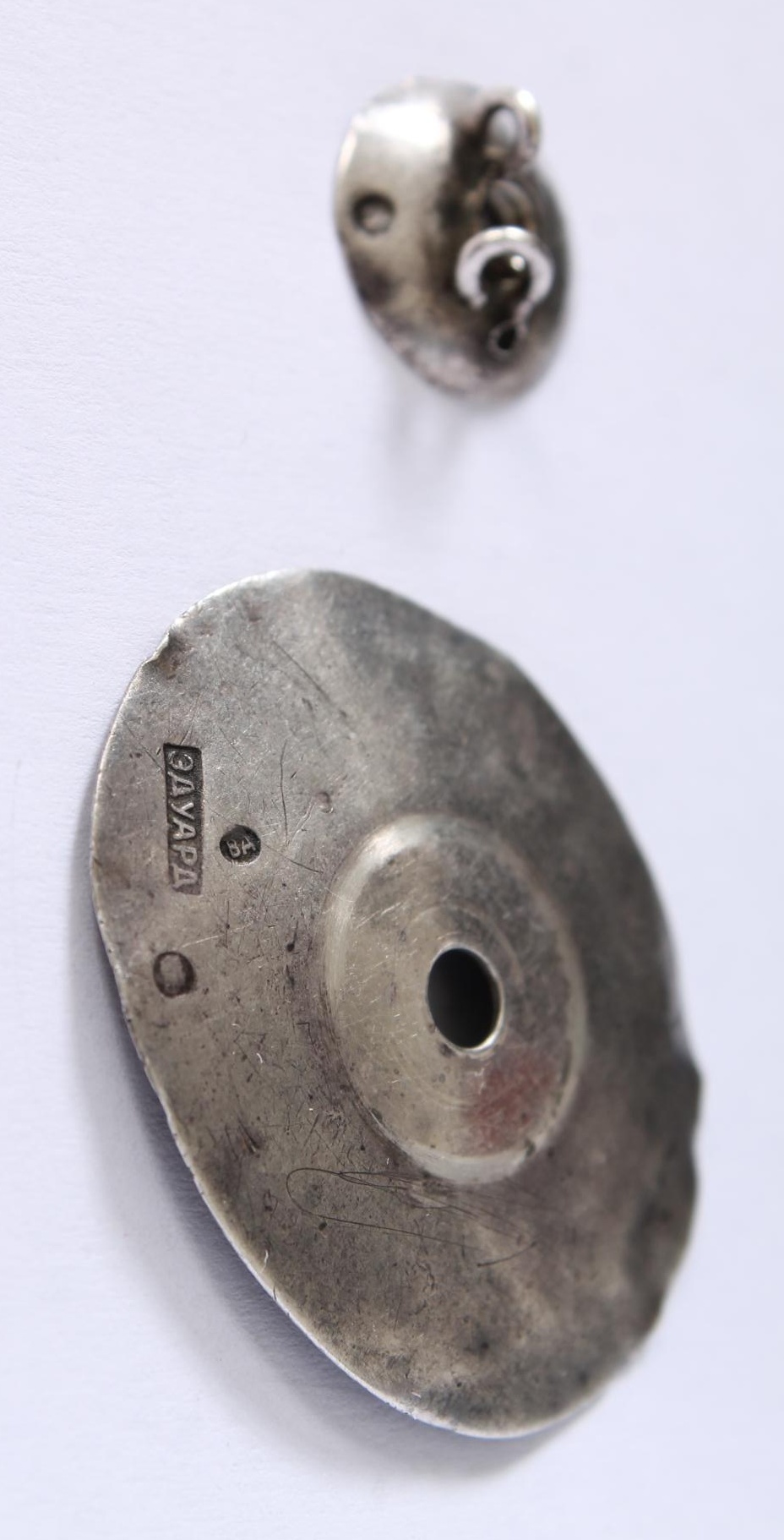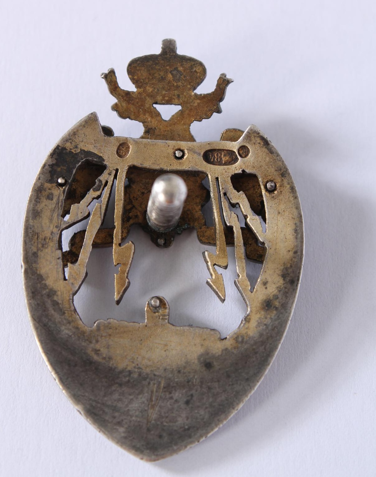 Фирма «Эдуард". Клейма: на знаке – именное «ВД", пробирное Санкт-Петербургского окружного управления после 1908 г., знак удостоверения; на прижимной шайбе – фирменное «ЭДУАРДЪ", именное «ВД", знак удостоверения; на закрутке – знак удостоверения. Источник фото: http://www.sammler.ru |