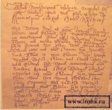 | Дмитрий Мокринский. | Грамота царя Алексея Михайловича на выделение земли и угодий монастырю. |