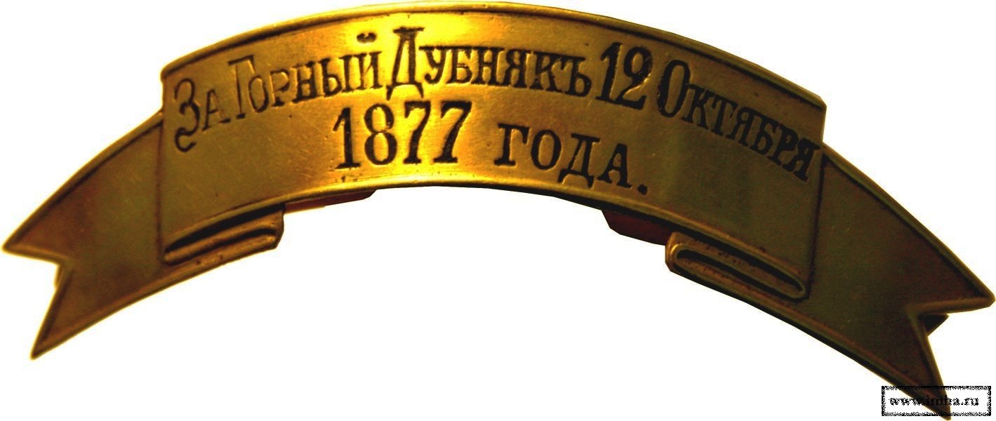 Лента наградная на головной убор "За Горный Дубняк 12 октября 1877 года". Копия. |