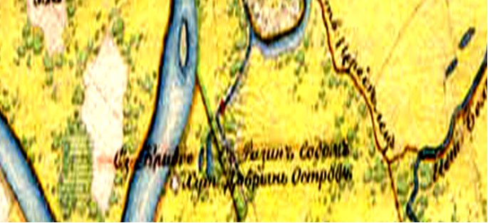 | р. Ока. Добрынин остров. Сер. 19 в. Фрагмент карты А. И. Менде |