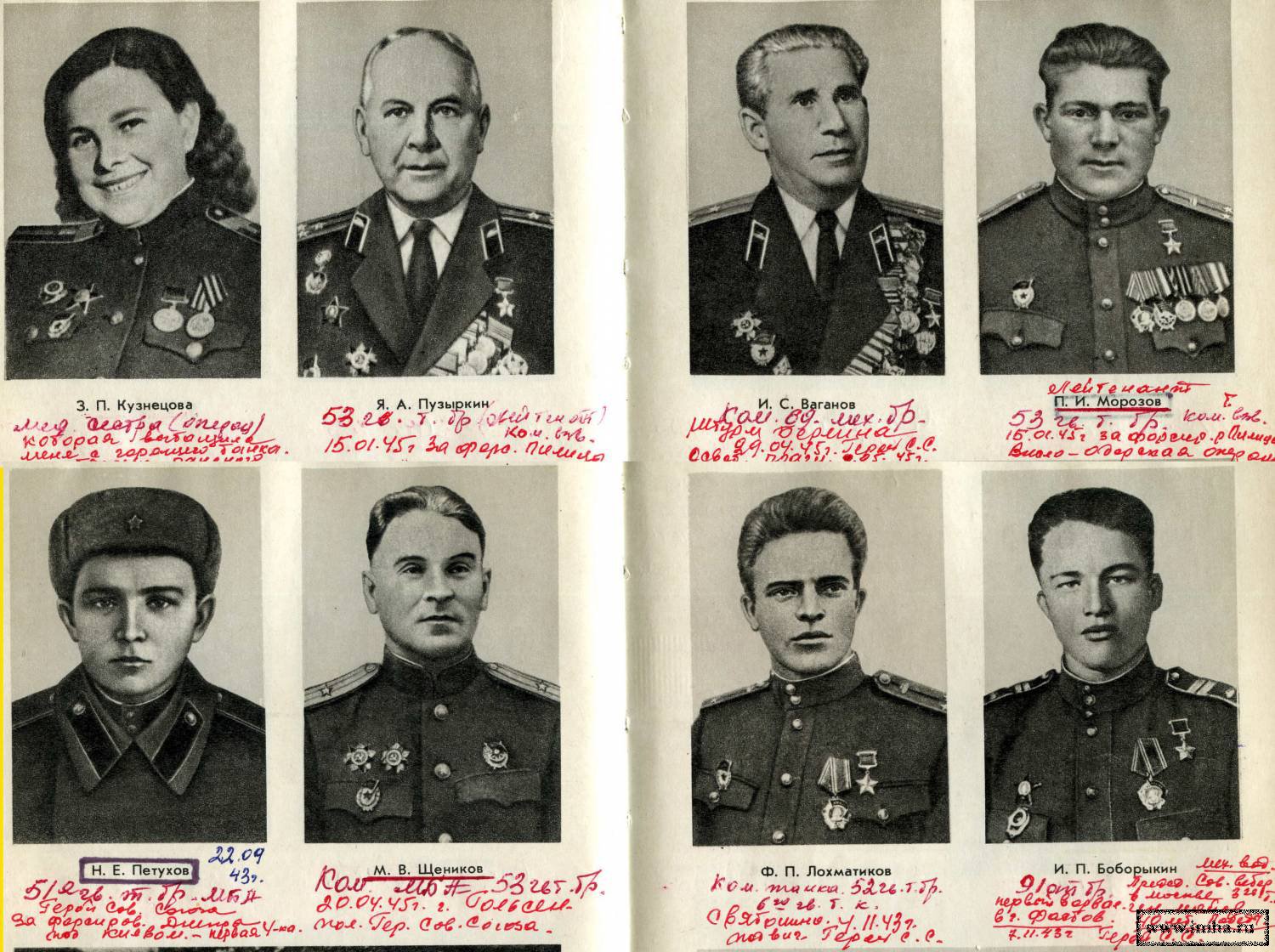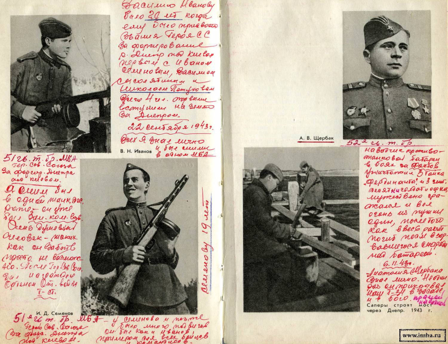Ветеран сделал записи и пометки, кого хорошо знал лично, или встречался. Поэтому, при желании можно увеличить фото и попытаться разобрать, что там написано, например: