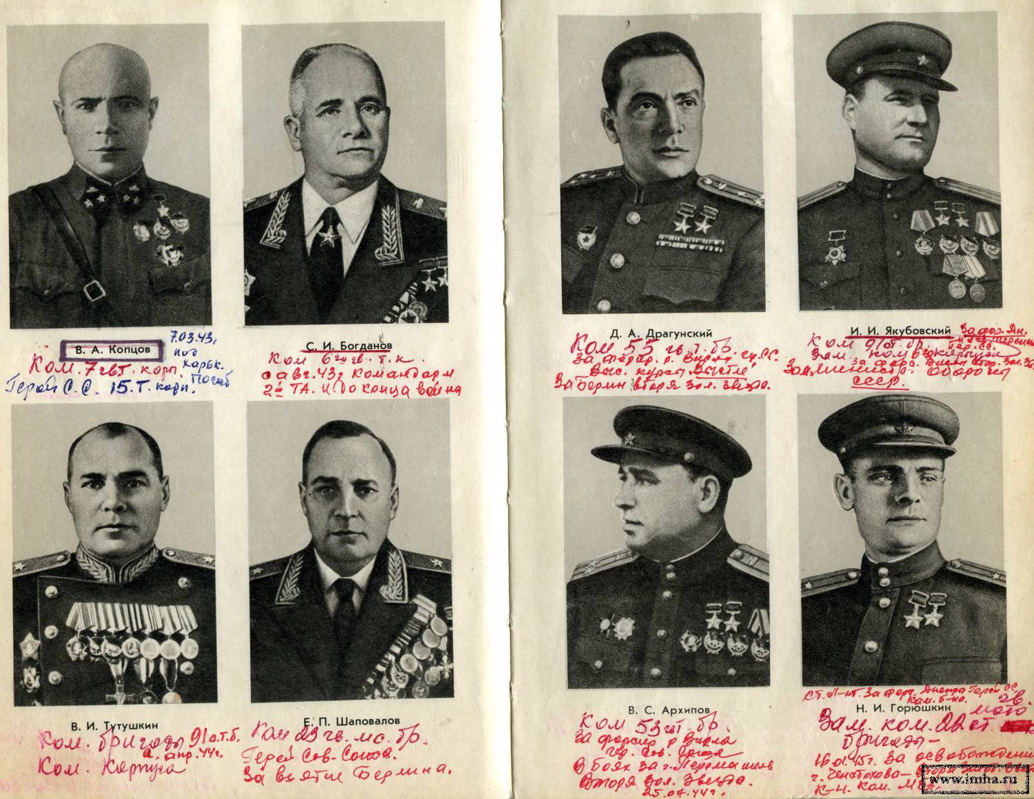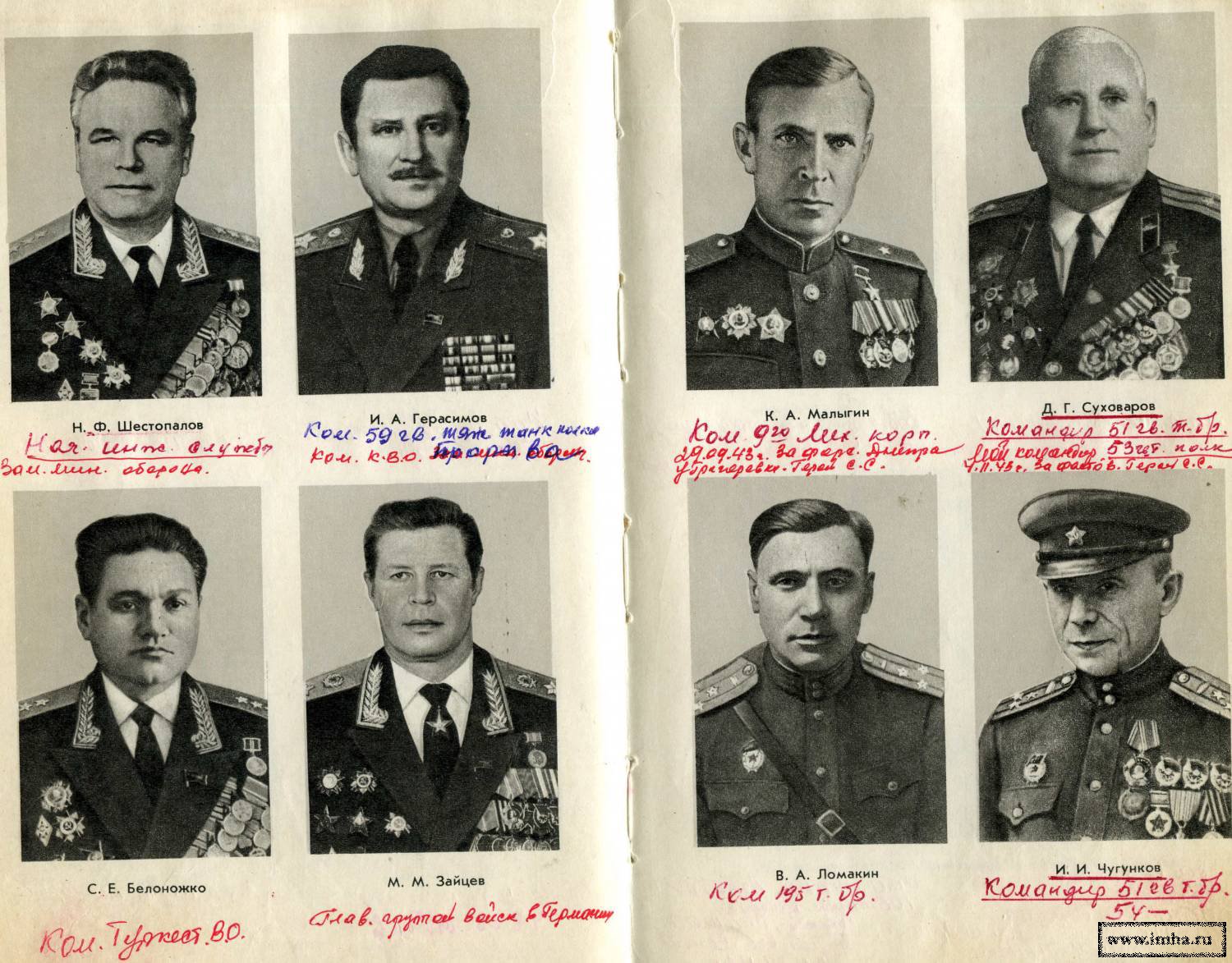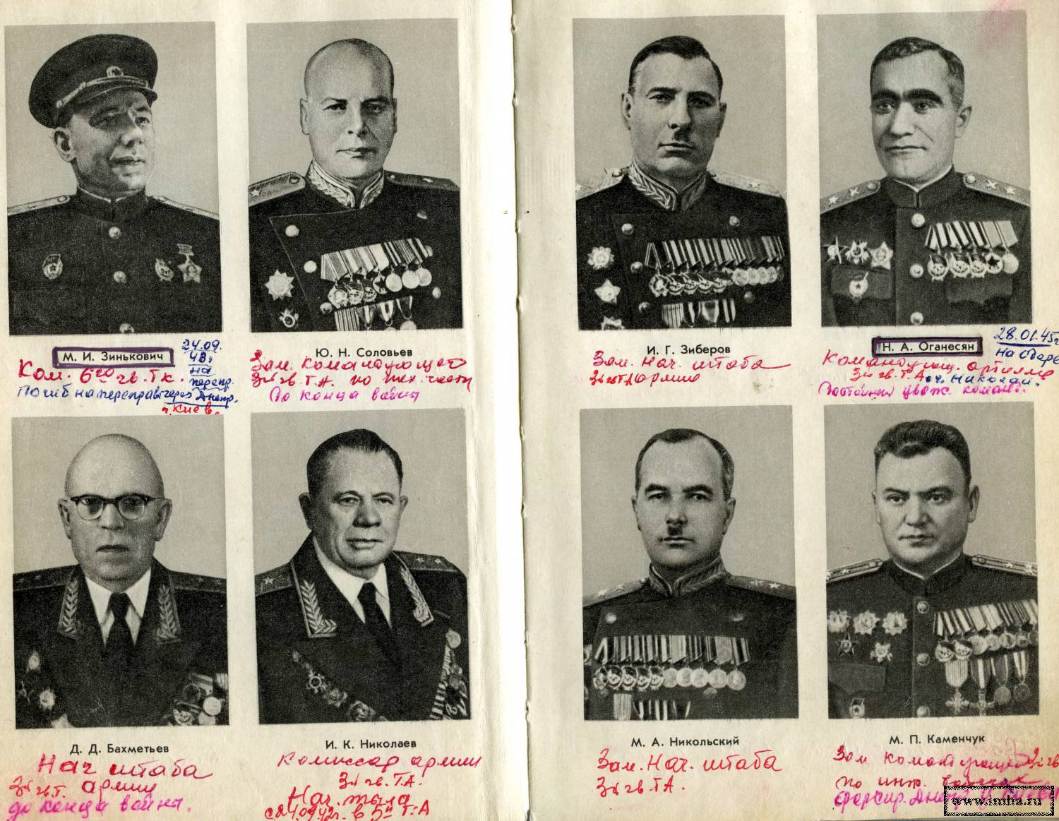 Позже посетил госпиталь командарм РЫБАЛКО. Он вручал награды, в том числе и мне, записал на полях книги ветеран. И в эти дни, когда 3 танковая армия в г. Лигнице была на переформировании, ко мне в гости в палату приходили мои друзья, боевые товарищи и командиры.
