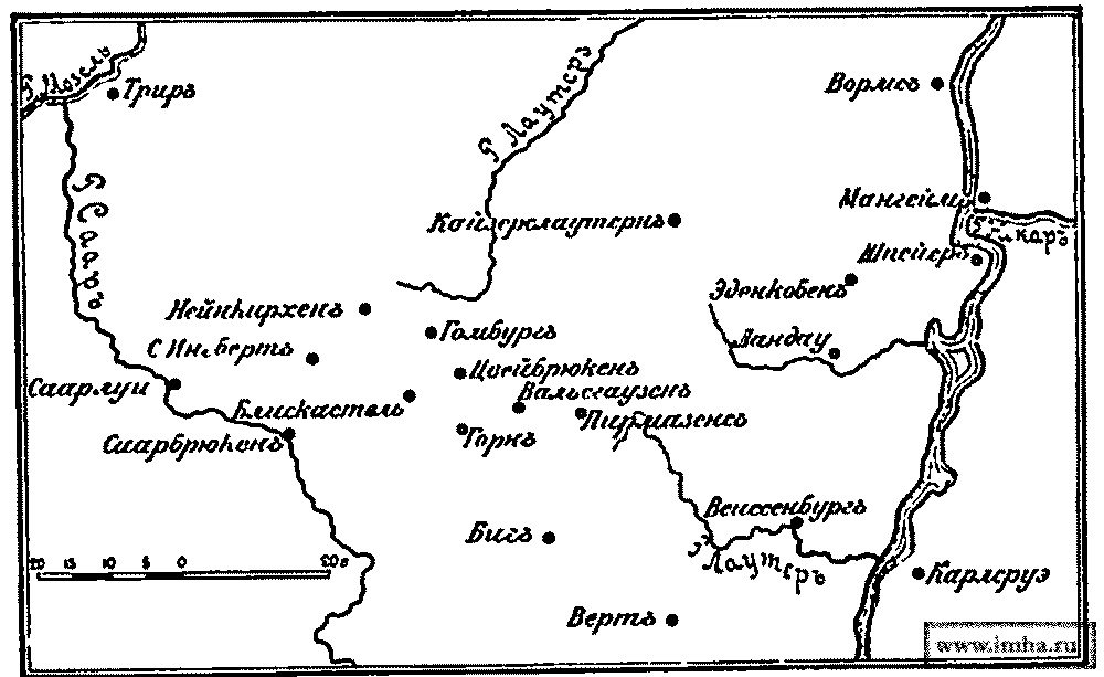 Генерал Калькрейт (11 батальонов и 10 эскадронов) стал к с от Саарбрюкена близ Нейнкирхена, оттеснив французов к С.-Ингберту; пр. Гогенлоэ (14 батальонов и 35 эскадронов) — у Гомбурга; герц. Брауншвейгский (19 батальонов и 25 эскадронов) — у Пирмазенса; король Прусский (14 батальонов и 15 эскадронов) — у Эденкобера, в виде резерва гр. Вурмзеру, выдвинутому к Ландау.