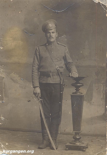 Серков Трофим Михайлович, уроженец деревни Сосновка Куртамышского района. Действующая армия, 11-я Сибирская Стрелково-артиллерийская бригада, 8-я батарея, 15 июля 1917 года. Источник фото: Зауральская генеалогия |