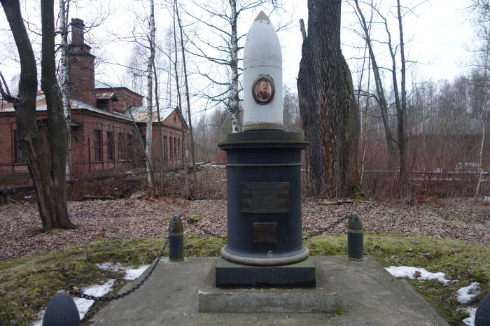 | Памятник посвящённый артиллеристу и испытателю Семёну Васильевичу Панпушко, погибшему при случайном взрыве бомбы 28 ноября 1891 года. |