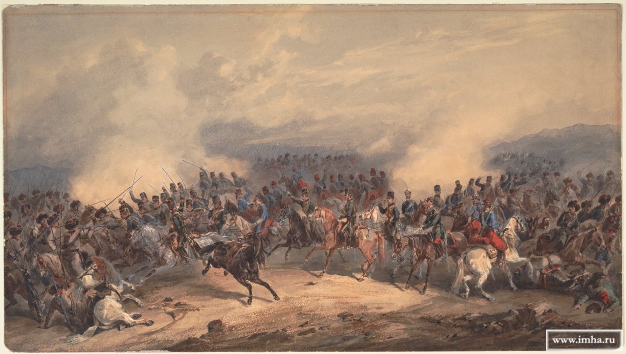 | 10-й гусарский полк и африканские егеря атакуют Русские войска в сражении при р. Черной 5 августа 1855 г. |