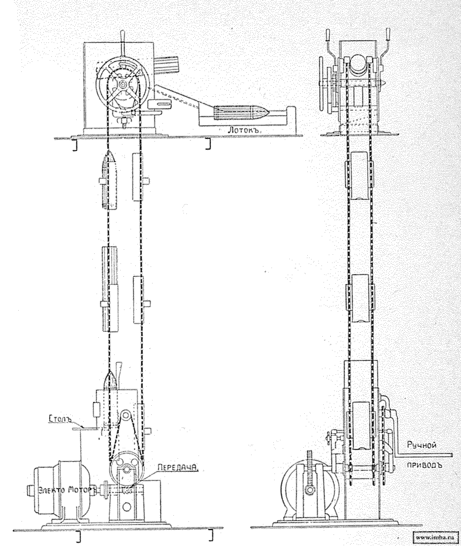 В последующее время появилась еще одна система ПОДАЧИ, обладающая всеми особенностями нории и потому требующая расположение погребов соответственно орудиям. По ней можно и грузить припасы в погреб, но без помощи мотора.