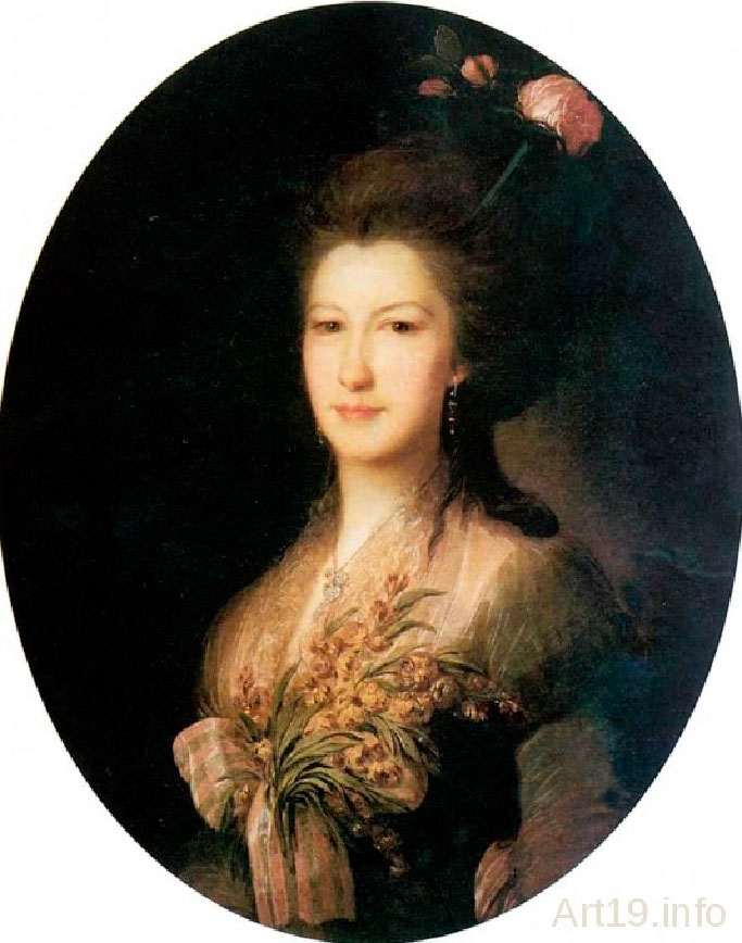 Графиня Елизавета Васильевна де Санти (урожденна Лачинова, помещица с. Мелехова. Ф. Рокотов. 1785 год.