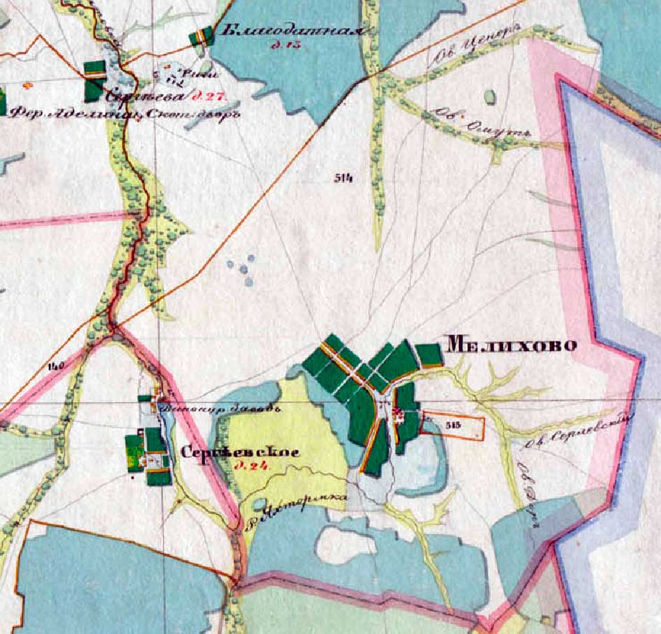 Но еще в 1754 году по метрическим книгам, Мелехово относится к Шацкому уезду Аладьенскаго заказу, и уже тогда помещиком является В.П.Лачинов.
