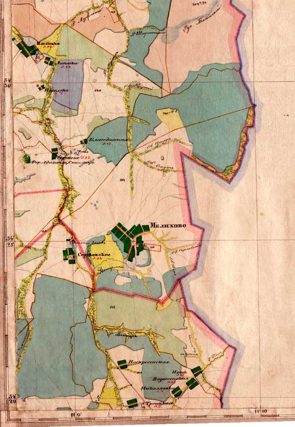 По р. Середник, она к середине века выходила в район села Глебова, а позже с. Карабухино, ныне Путятинского района.
