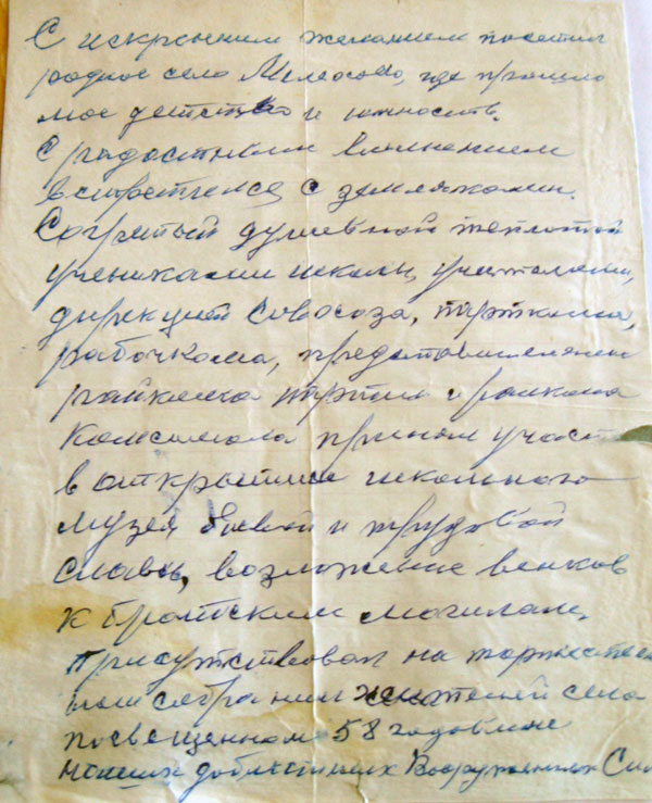 1 февраля 1952 г., Приказом по Чучковскому РОНО №34 от 2. 2. 1952 г. назначен директором Мелеховской 7-летней школы.