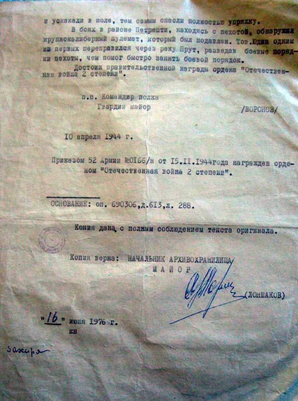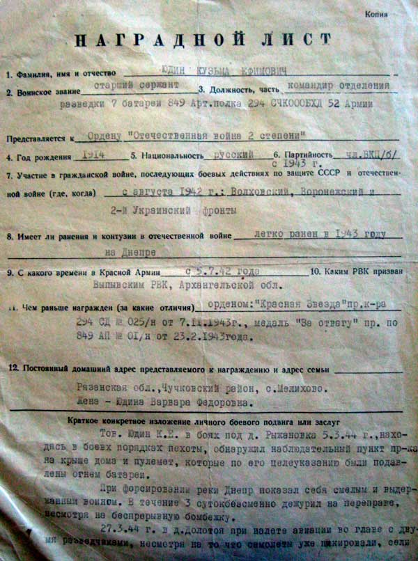 Из Наградного листа: