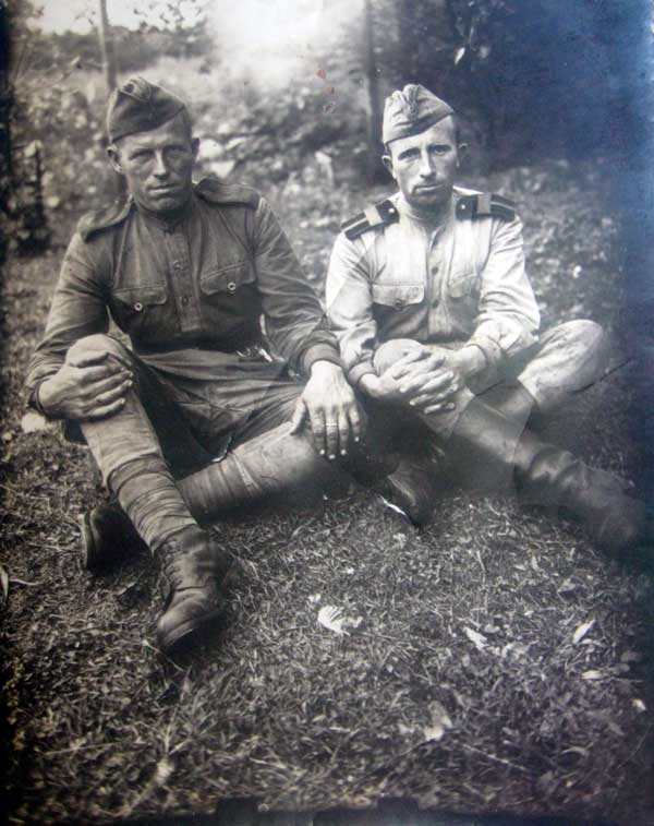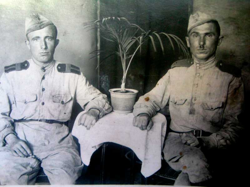 Сохранилась фотография от 23.01.1937г., где он ( правый крайний) в красноармейской форме и в буденовке, вместе с ним его же односельчане – Михаил Воробьев ( слева) и Сергей Козлов.