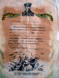 Выписка из наградного листа: " 1. краткое, конкретное изложение личного боевого подвига или заслуги: 26 ноября 1943 года при расширении плацдарма на правом берегу Днепра ст. сержант Китаев после переправы под сильным артиллерийско – минометным и пулеметным огнем противника стремительно бросился в атаку, преодолев на своем пути проволочные заграждения, забрасывая траншеи противника гранатами, уничтожил при этом одну пулеметную точку и 6 фрицев. Своим личным примером поднял бойцов взвода и овладел траншеями противника. В боях за дальнейшее расширение плацдарма в составе взвода отбил три контратаки пехоты противника, поддержанные танками ».