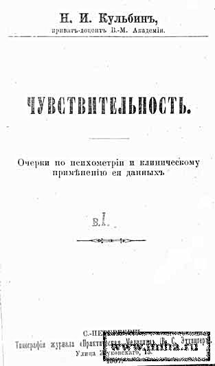 11. Кульбин, Н.И. Чувствительность. Очерки по психометрии и клиническому применению ее данных / Н.И. Кульбин. - СПб., 1907.-С. 31.