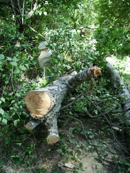 Помимо надгробия упавшее дерево поломало кусты сирени.