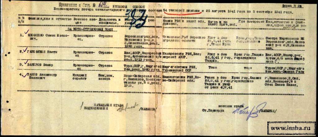 [103] Из них 9 утонувших при форсировании Аракса. См. Гасанлы Д. СССР-Иран: Азербайджанский кризис и начало холодной войны. 1941-1946. Салихов А.Ш. (Красная Армия в Иране. 1941-1944гг. / Военно-исторический журнал. 2008. №3. С. 20) указывает 40 человек, по другим данным – 50 человек. Пофамильный список не опубликован.