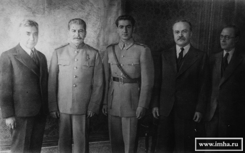 | Наши в Тебризе. 1941. | Сообщение о погибших в Иране | Сталин, Молотов и шах Магомед Реза (1943 г.) | Ф. И. Толбухин |