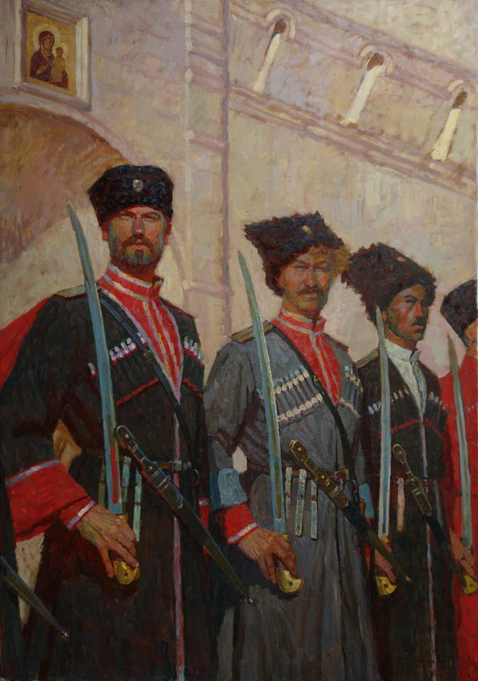 | Шашек лезвия точите, И кинжалы, и штыки, Да поглубже их вонзите В сердце гада, казаки, В сердце красного дракона, За Святую нашу Русь! Ради Правды и Закона Божия! Вперёд, не трусь! Дружно, с именем Пречистой! Пусть священная война Родину огнём очистит! И да сгинет сатана! Спасибо Дмитрию Шмарину за превосходную иллюстрацию! |