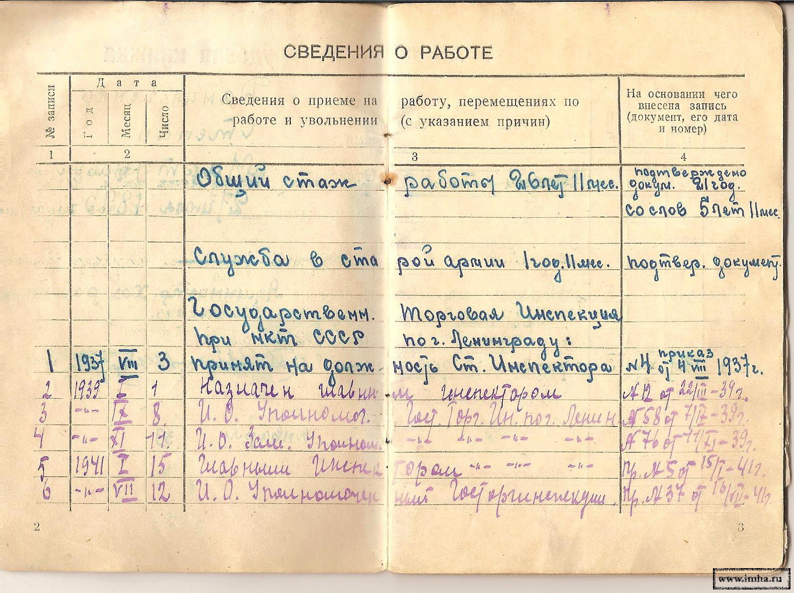 В конце 1948 г. отец пишет в Горком партии, что бы его заменили человеком с образованием. На это ему ответили – "работай и жди". Отец испытывал неловкость, что под его руководством работают люди с высшим образованием, старался освободить им дорогу. В середине декабря 1948 года - оставляет Госторгинспекцию и переходит на работу в систему Ленгоркоопинсоюза, а в 1949 г. Старшим инспектором Торга в Петродворец.