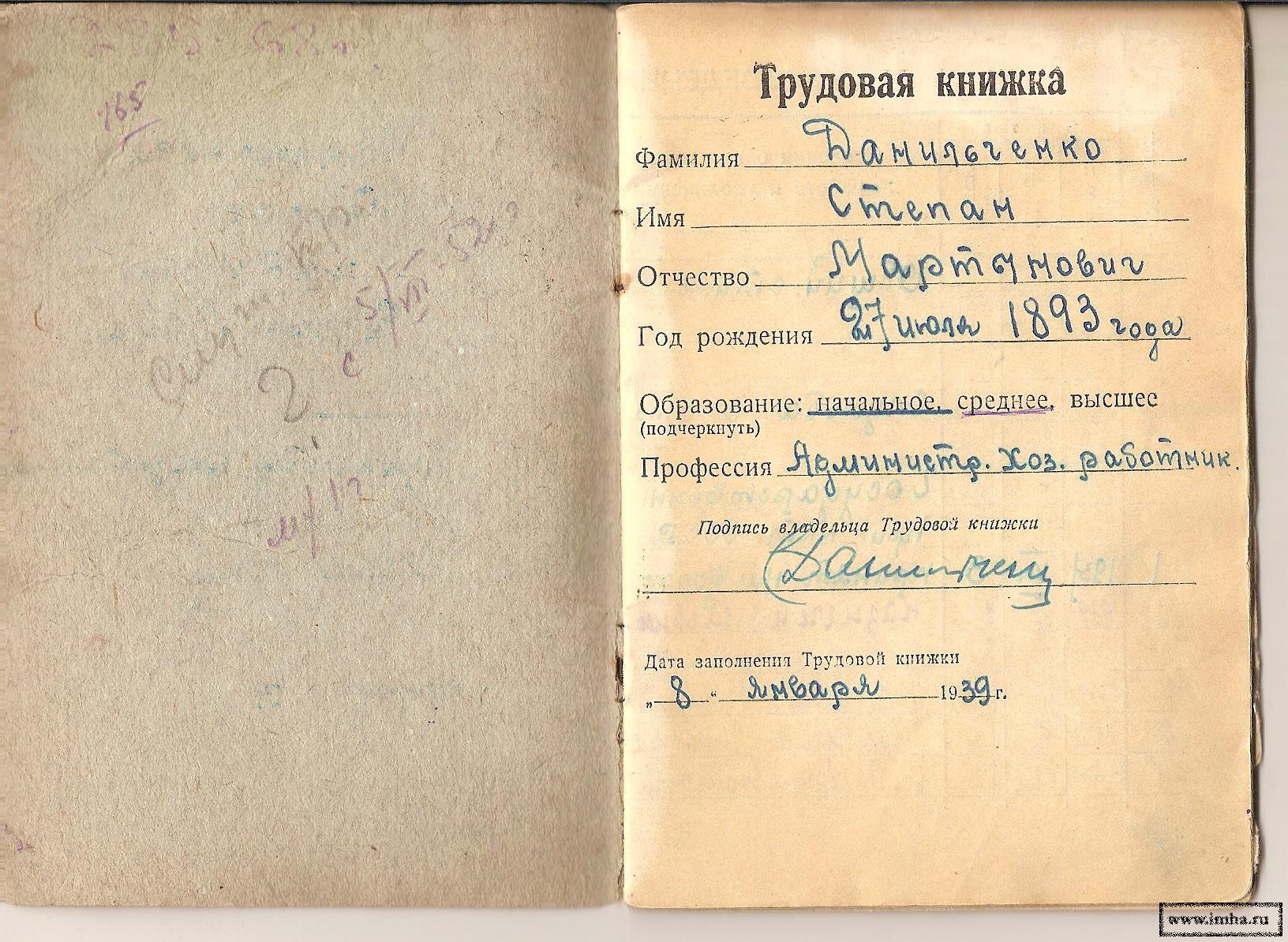 Время было очень опасное – 1937 г. и только незапятнанная репутация и простое происхождение – дала ему преодолеть это тяжелое время и клевету недругов. Здоровье пошатнулось, появилась язва желудка. Позади разруха, голод, НЭП – Государство строит Советскую торговлю и органы контролирующие ее. Опять нужен Данильченко – проверенный, принципиальный, честный человек. Посылают на специальные курсы. Отец отлично заканчивает эти курсы, понимает, что нужны знания и целиком уходит в учебу. С усмешкой вспоминает, как на рынке однажды китайцу сказал, чтобы тот немедленно убрал с прилавка сыр с плесенью. Продавец взмолился, говорит, что так надо, - это сыр "рокфор". А отец ему: - "Сегодня убери, а завтра я к тебе зайду. Быстро навел справки о сырах в частности о "рокфоре". Понял, что надо учиться, все познавать, с чем сталкивает жизнь. На следующий день пришел – извинился перед китайцем и разрешил торговать.