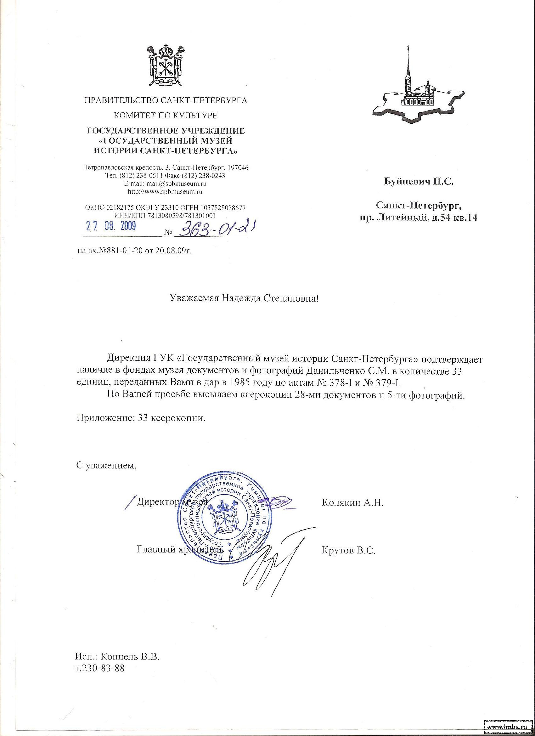 Отец знал, что там были продукты и много. Отсутствие продуктов голод и беспрестанная орудийная стрельба – не просто было жить в городе, а надо было еще и работать. Голод не различал профессий и те люди, которые направляли жизнь в блокадном городе, были поставлены в те же условия. У отца началась дистрофия, взрослый человек весил 42 кг и от бессилия держался за стены. Руководство настояло на том, чтобы его положили в больницу. Днем работал, а вечером ходил в Куйбышевскую больницу – лечиться. По своей специфики работы отец подчинялся только Москве. Когда же там узнали, что у Данильченко дистрофия – прислали спецпосылку. Отец не пользовался убежищем. У него был пропуск свободного хождения по городу в любое время. Однажды чудом остался жив, спасла змея у Куйбышевской больницы – эмблема медицины на каменном пьедестале – вот за этим камнем он и укрывался.