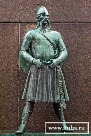/2/ Просвещенные ромеи-византийцы (жители Восточной Римской, или, по-гречески, "Ромейской", империи) и ориентировавшиеся на них, как на желанный, но недосягаемый во многих отношениях образец, христиан Южной, Центральной, Западной и Восточной Европы, носивших в описываемое время бороды, неоднократно обращали внимание на то, что норманны носили длинные усы, но брили бороды. Так, ромейский хронист Лев Диакон оставил в своей "Истории" сообщение о переговорах внука предводителя норманнов Рюрика Зеландского - князя Святослава Киевского - с ромейским императором. То, что князь, прибывший на переговоры в ладье, сам греб одним из весел, наряду с прочими дружинниками, и простота белых льняных рубах "варварского" князя и его гребцов, и их диковатый для "просвещенных" ромеев вид, и клок (локон, хохол) волос на голове князя - признак знатности рода - все это казалось ромейскому хронисту крайне необычным и потому достойным особого упоминания, как и то, что "архонт (князь, старейшина) русов" был с длинными усами, но без бороды (именно таким - длинноусым и безбородым, изваял норвежский скульптор древнего викинга, украшающего ныне цоколь памятника мореплавателям в Бергене на его стороне, посвященной плаванию норманнов в Винланд, т.е. Америку - см. фотографию, помещенную нами, в качестве иллюстрации, в заголовке настоящей военно-исторической миниатюры).