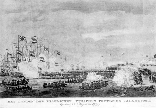Английская дивизия генерала Аберкромби, собранная в юго-восточных портах Англии, отплыла 2 августа под прикрытием эскадры Митчеля, не выжидая русского корпуса генерал-лейтенанта Германа; в то же время союзный русско-английский флот лорда Денкена и Макарова (корабли: Елизавета, Мстислав, Сев. Орел, Всеволод, Болеслав, Ретвизан и Европа, фрегаты: Счастливый и Рига, катер Диспич) блокировал Тексель.