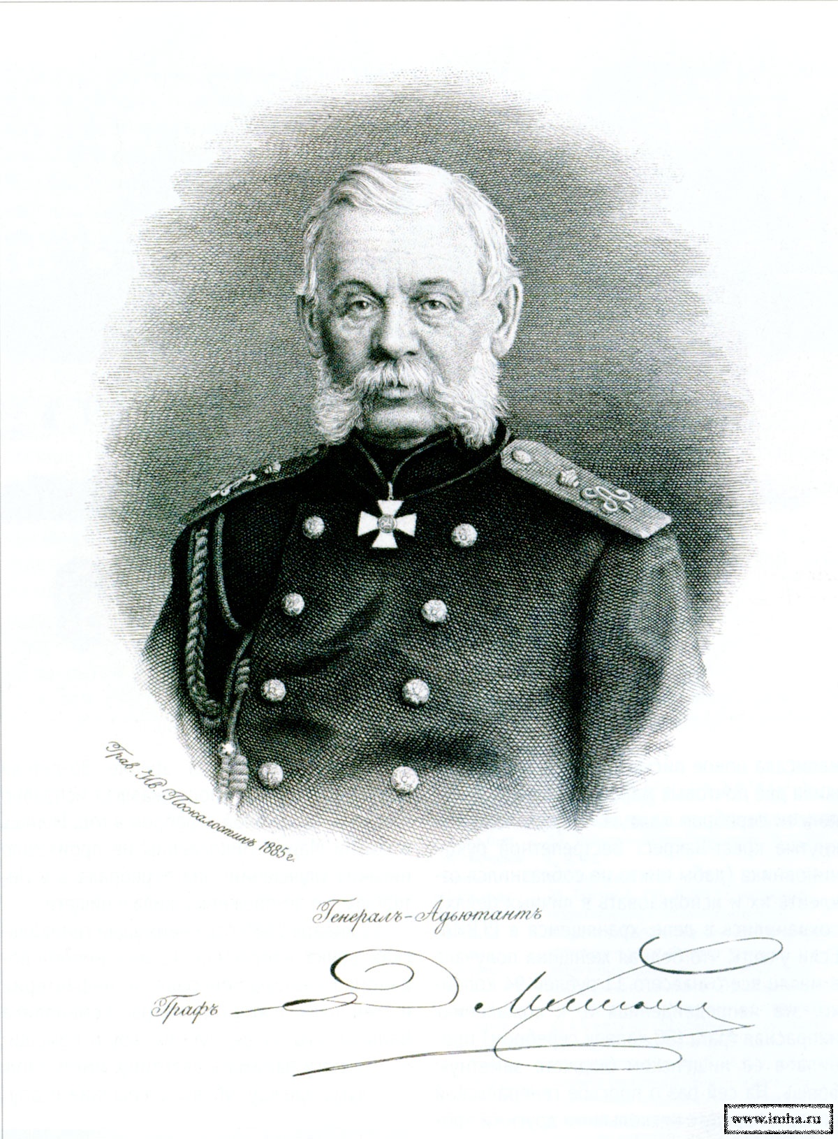 Генерал-адъютант Д.А. Милютин. Гравюра ак. И.П. Пожалостина. 1885 г. |