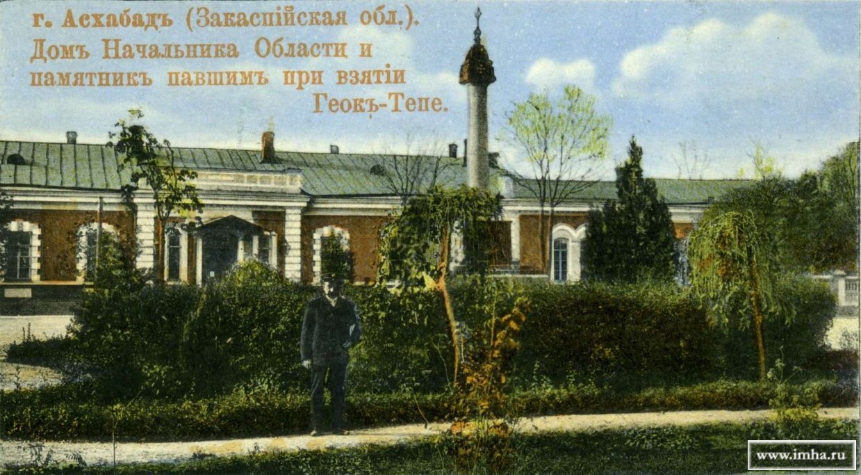 | Закаспийская область. Асхабад. Дом Начальника Области и памятник павшим при взятии Геок-Тепе |