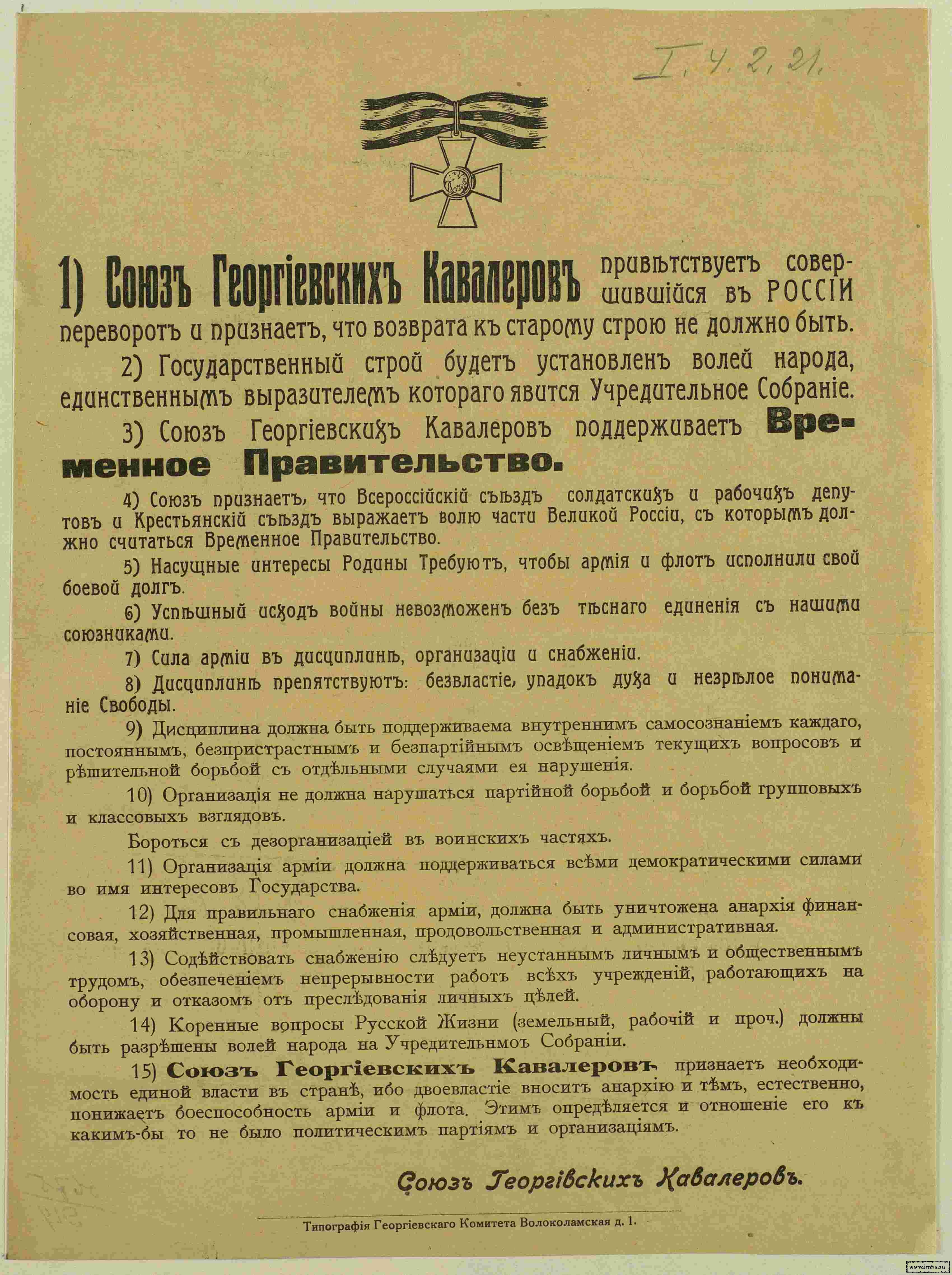 С первых же дней своего существования орден Св. Георгия завоевал себе в нашей армии особое почетное место, которое сохраняется за ним и до настоящего времени.