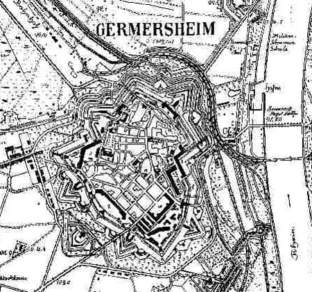 Со времени второго парижского мира (1816 г.) Гермерсгейм находился во владении Баварии, которая на создание в нем сильной крепости союза немецкого государств получила тогда же из французской контрибуции 15 т. гульденов, но к работам были приступлено лишь в 1834 г.