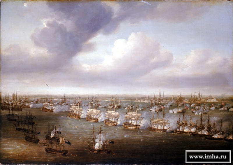 Последние суда заняли свои позиции около полудня, и с этого момента бой разгорелся по всей линии.